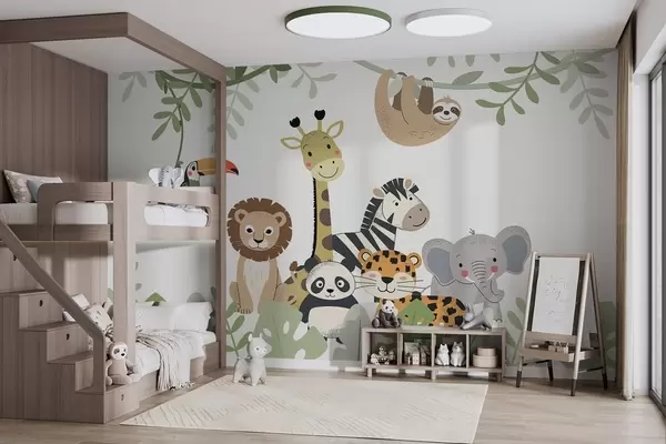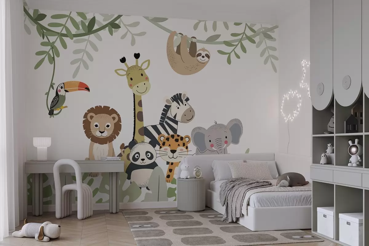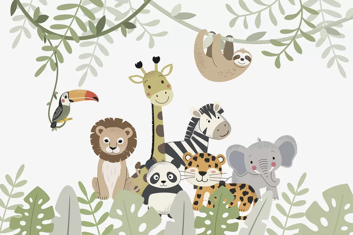 Papier peint Jungle féérique avec des animaux N° w04905