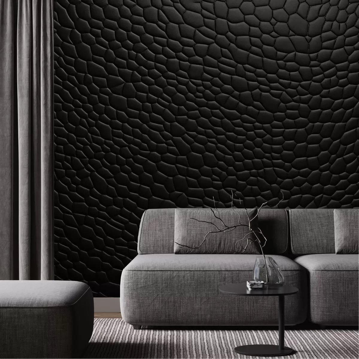 Papier peint Mosaïque noire avec un relief tridimensionnel doux N° w04955