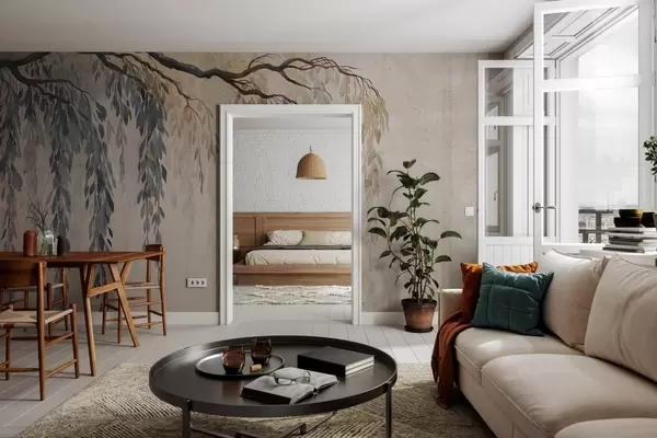 Le papier peint est divisé en bandes pratiques d'une largeur maximale de 50 cm