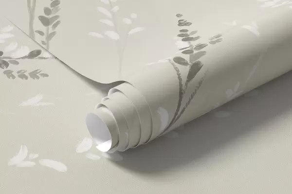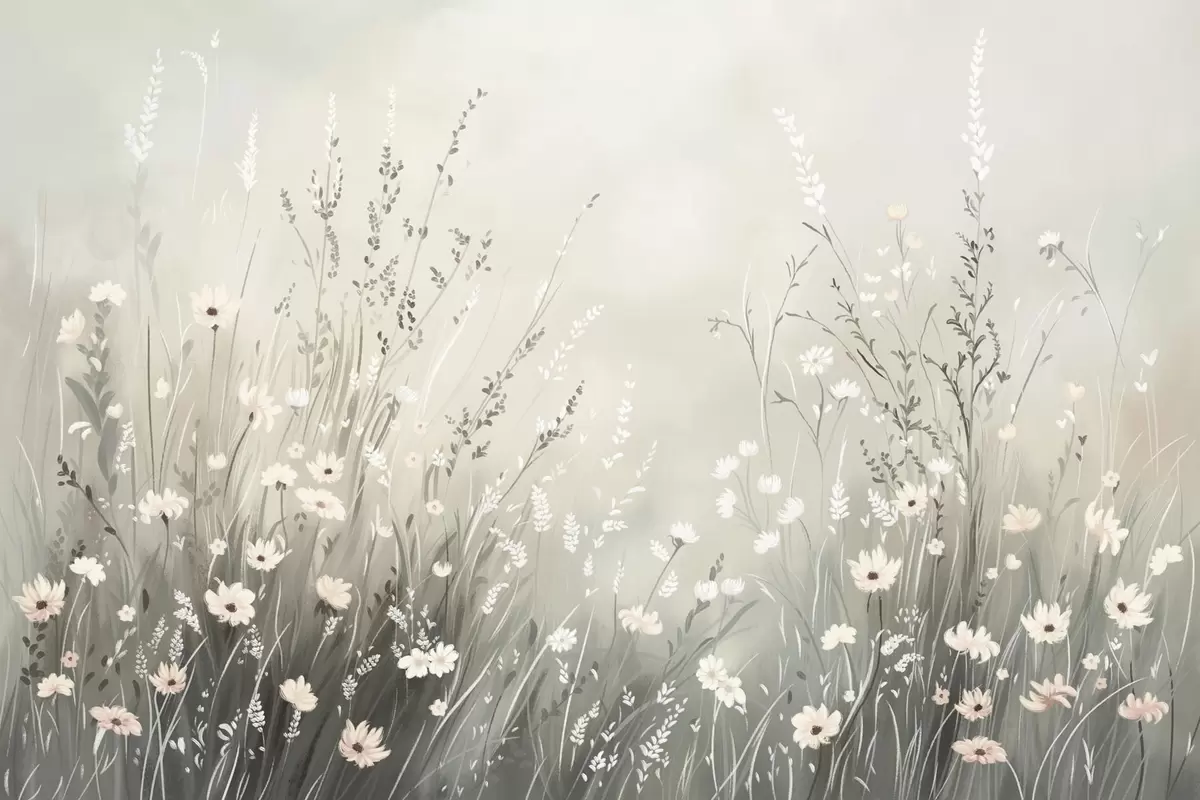 Papier peint Scène champêtre douce avec des fleurs blanches et des herbes délicates N° w05015v1