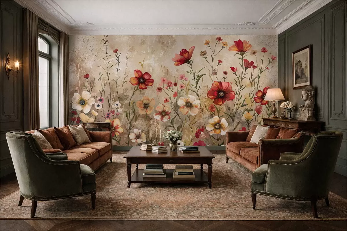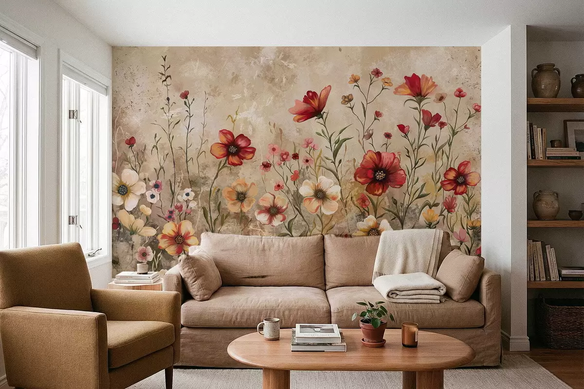 Papier peint Composition florale avec fond texturé dans des tons chauds N° w05016