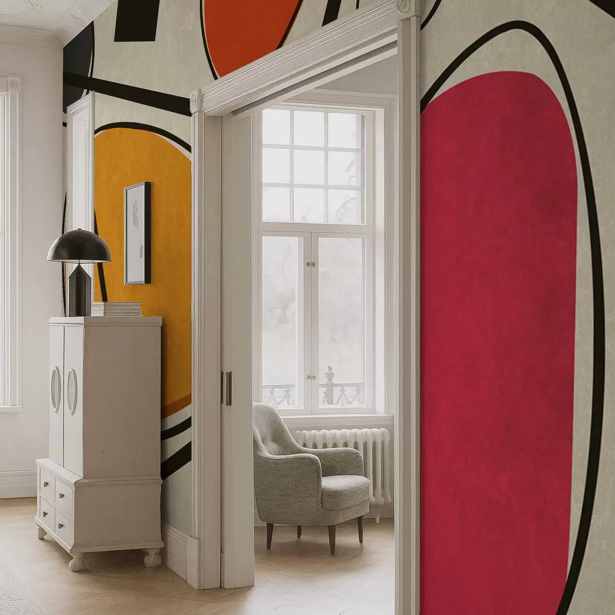 Papier peint Formes abstraites et lignes avec des champs de couleurs vives N° w05017