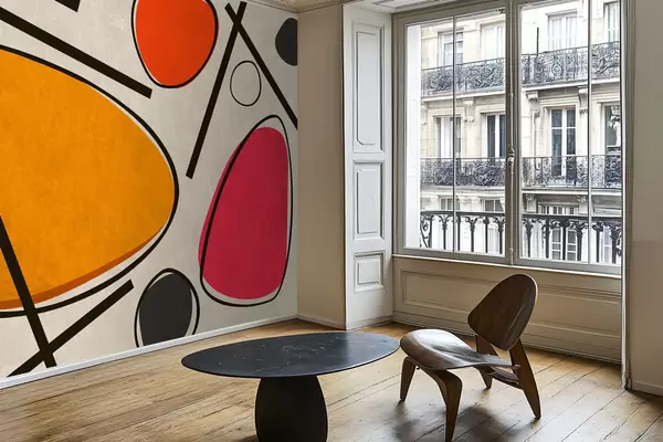 Papier peint Formes abstraites et lignes avec des champs de couleurs vives N° w05017