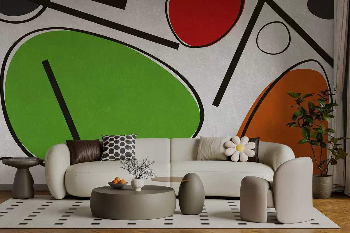 Papier peint Formes géométriques abstraites avec des lignes et des zones de couleurs vives N° w05017v1