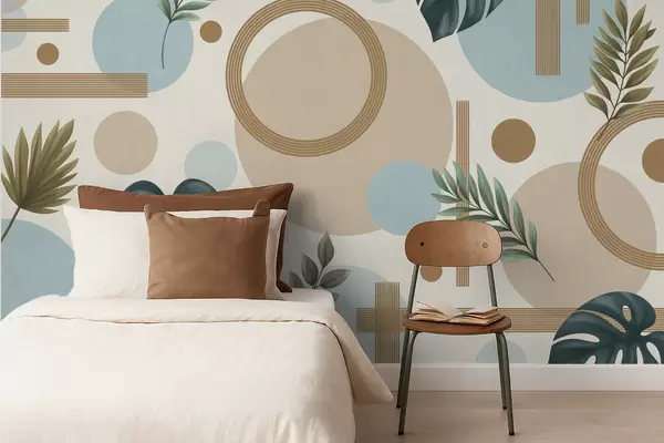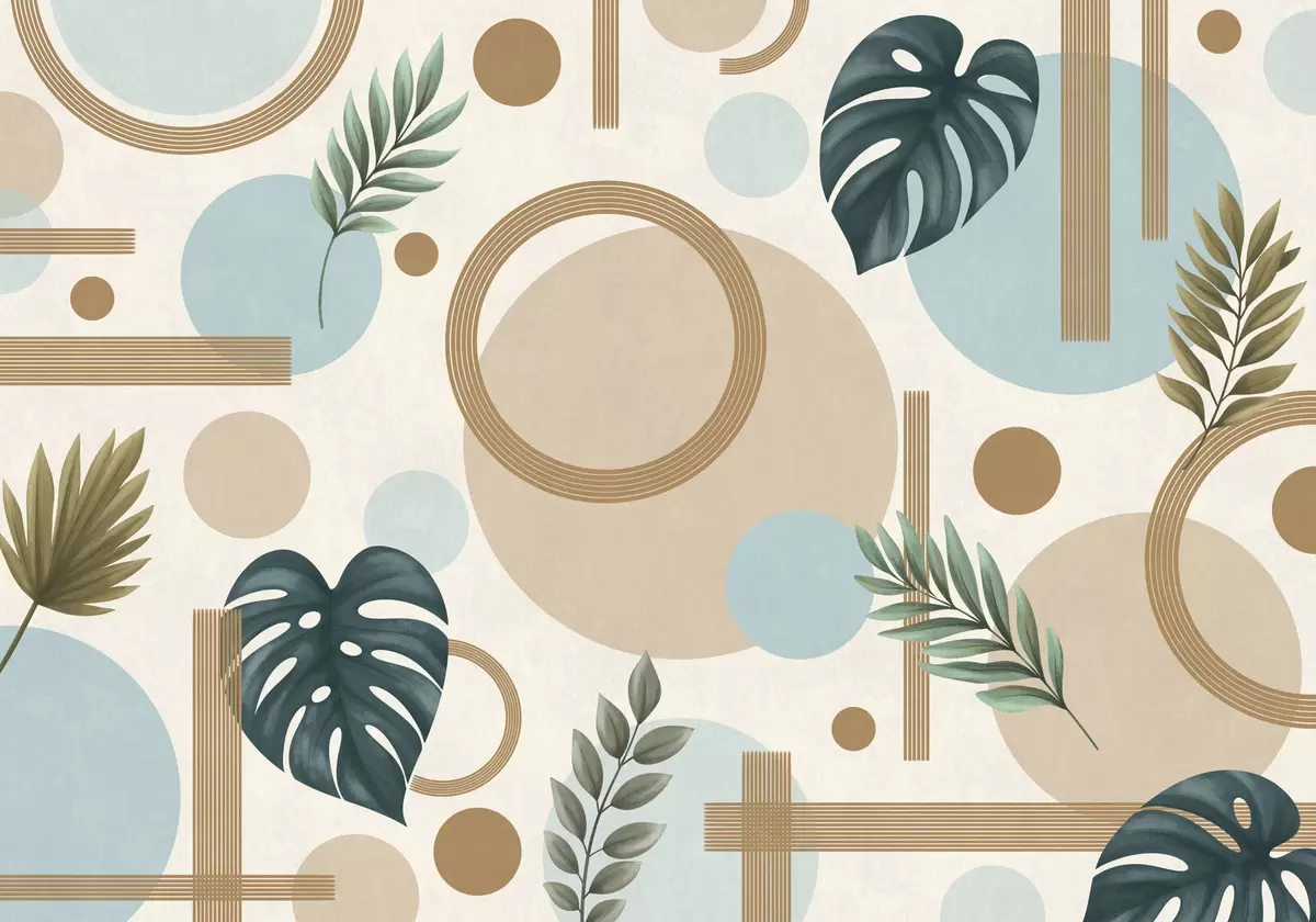 Papier peint Motif géométrique avec des feuilles et des cercles dans des tons apaisants N° w05018