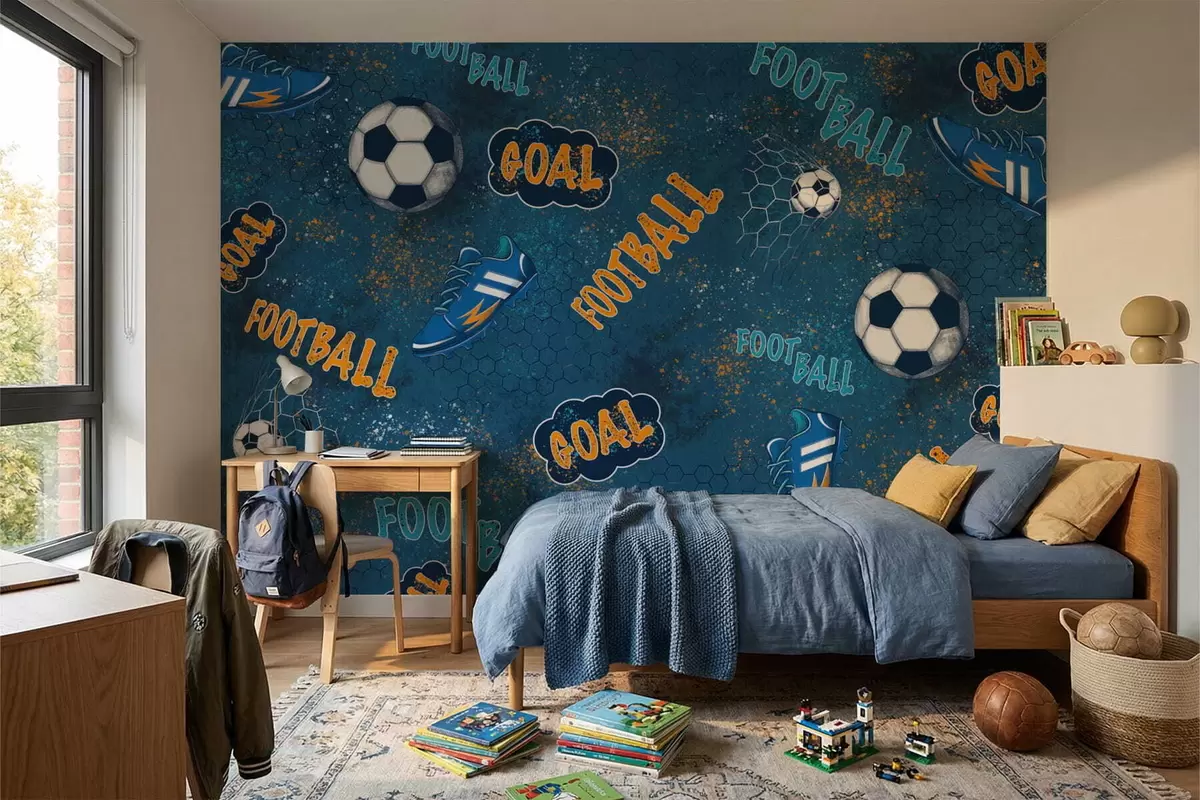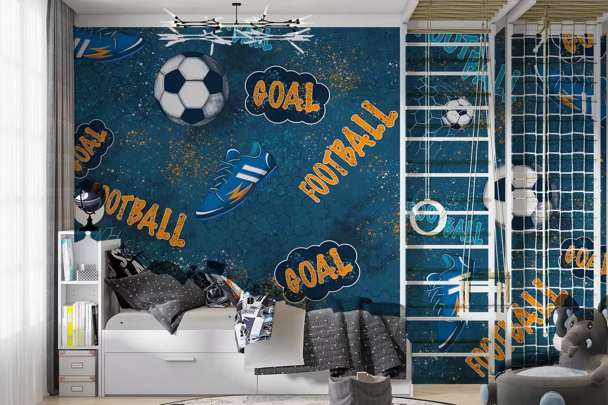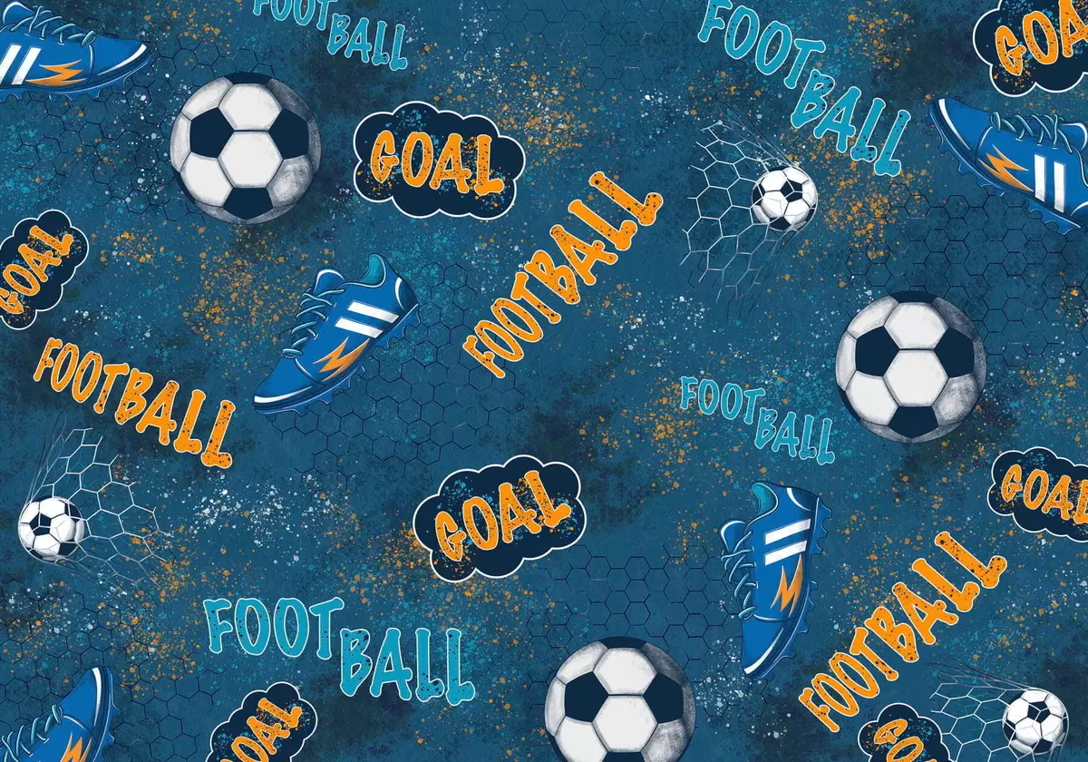 Papier peint Motif pour enfants avec ballons, chaussures et mots sportifs N° w05037