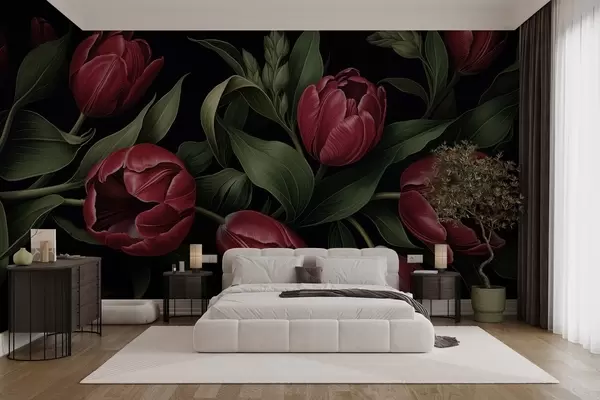 Papier peint Les tulipes rouges de la nuit N° w05047