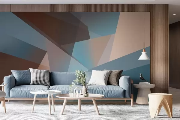 Papier peint géométrie abstraite dans les tons bleus et bruns N° w05064