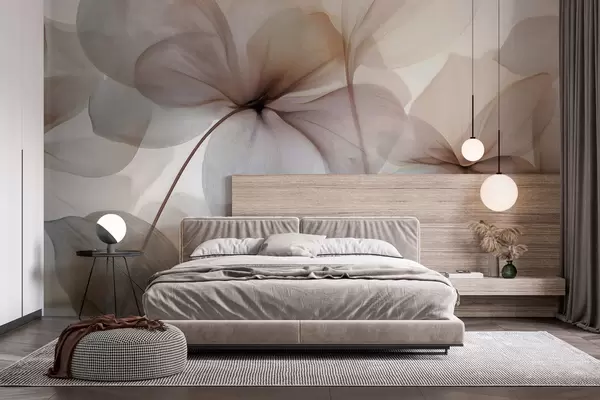 Papier peint fleurs semi-transparentes avec des nervures N° w05070
