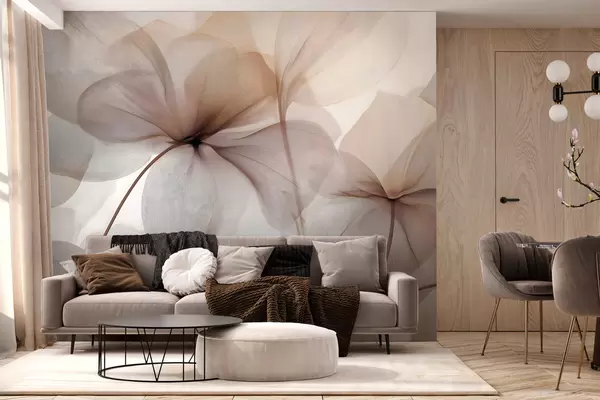 Papier peint fleurs semi-transparentes avec des nervures N° w05070