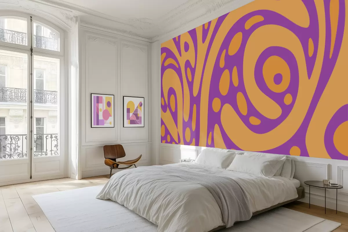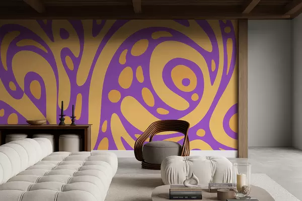 Papier peint Motif abstrait avec des formes fluides en deux couleurs N° w05071v3