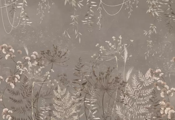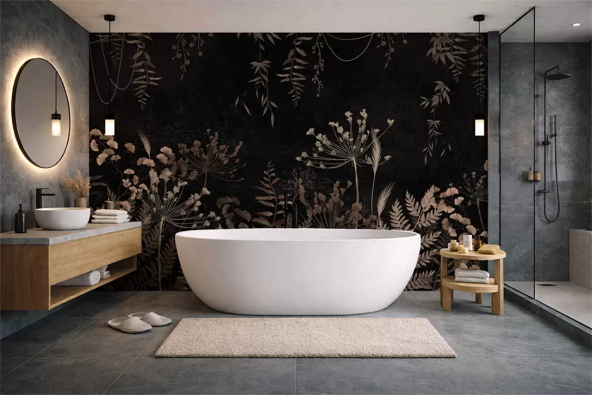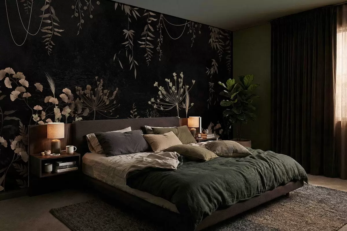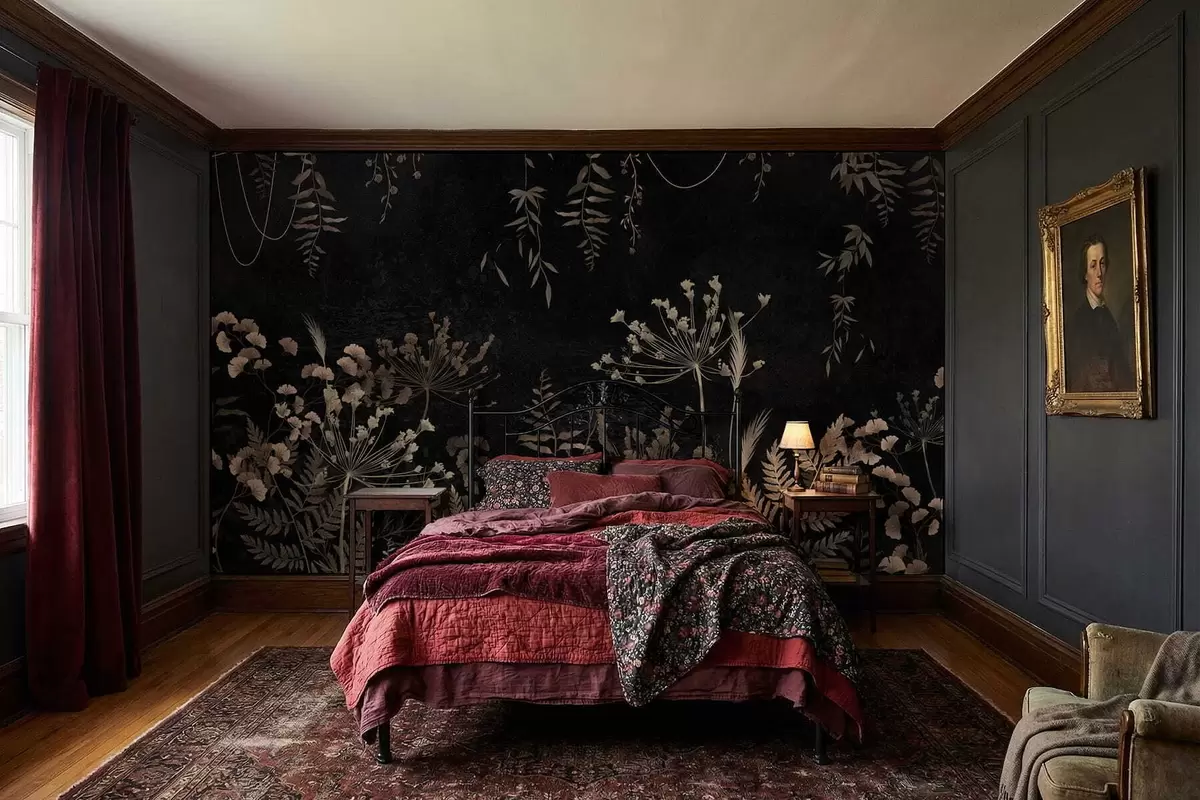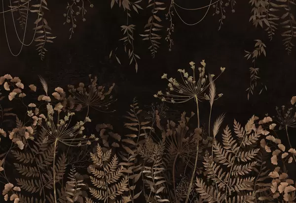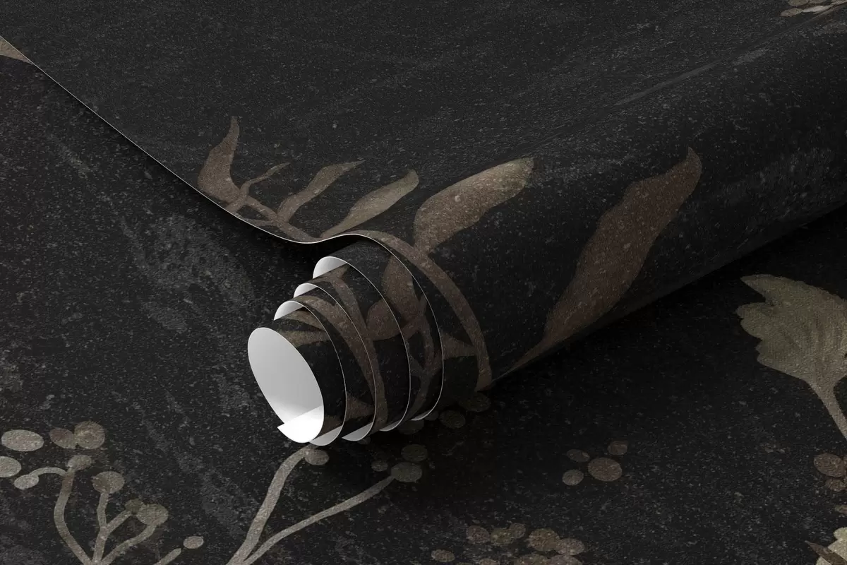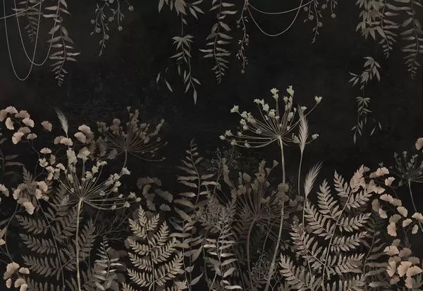 Papier peint Motif botanique sombre avec des fleurs et des feuilles N° w05092