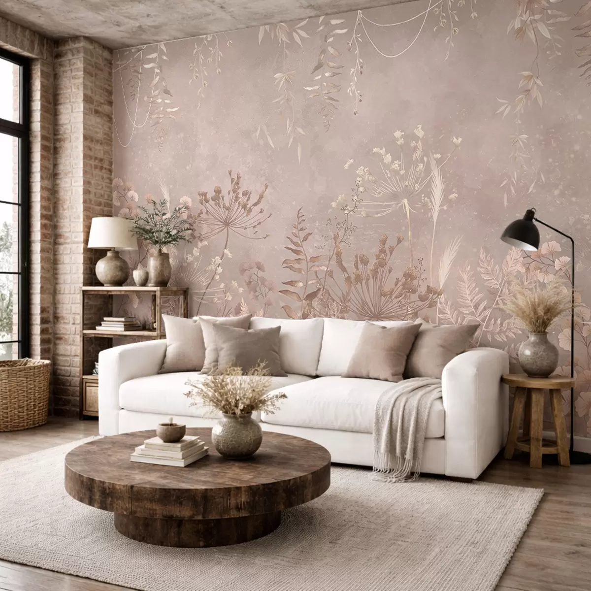 Papier peint Motif botanique beige clair avec des fleurs sauvages N° w05092v2