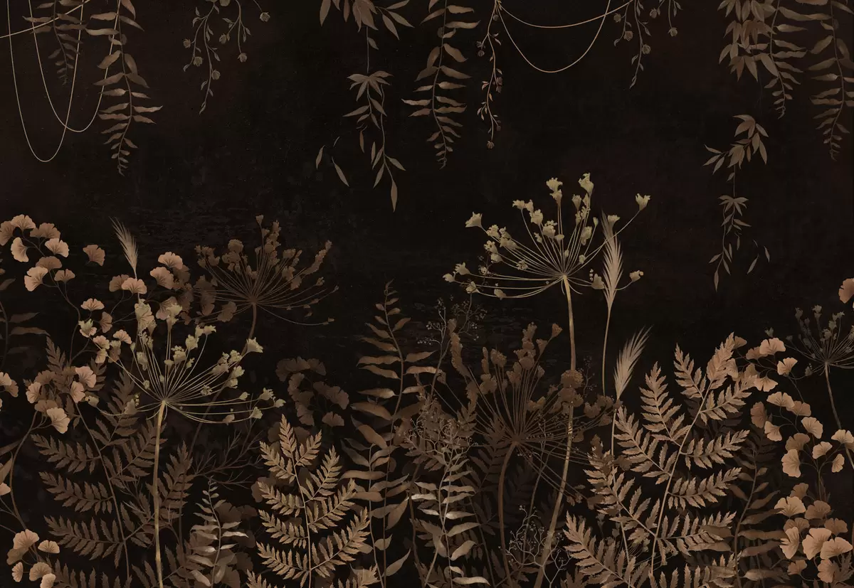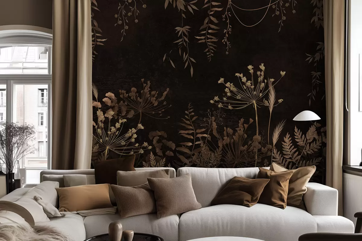 Papier peint Motif botanique sombre avec des fleurs et des herbes N° w05092v3