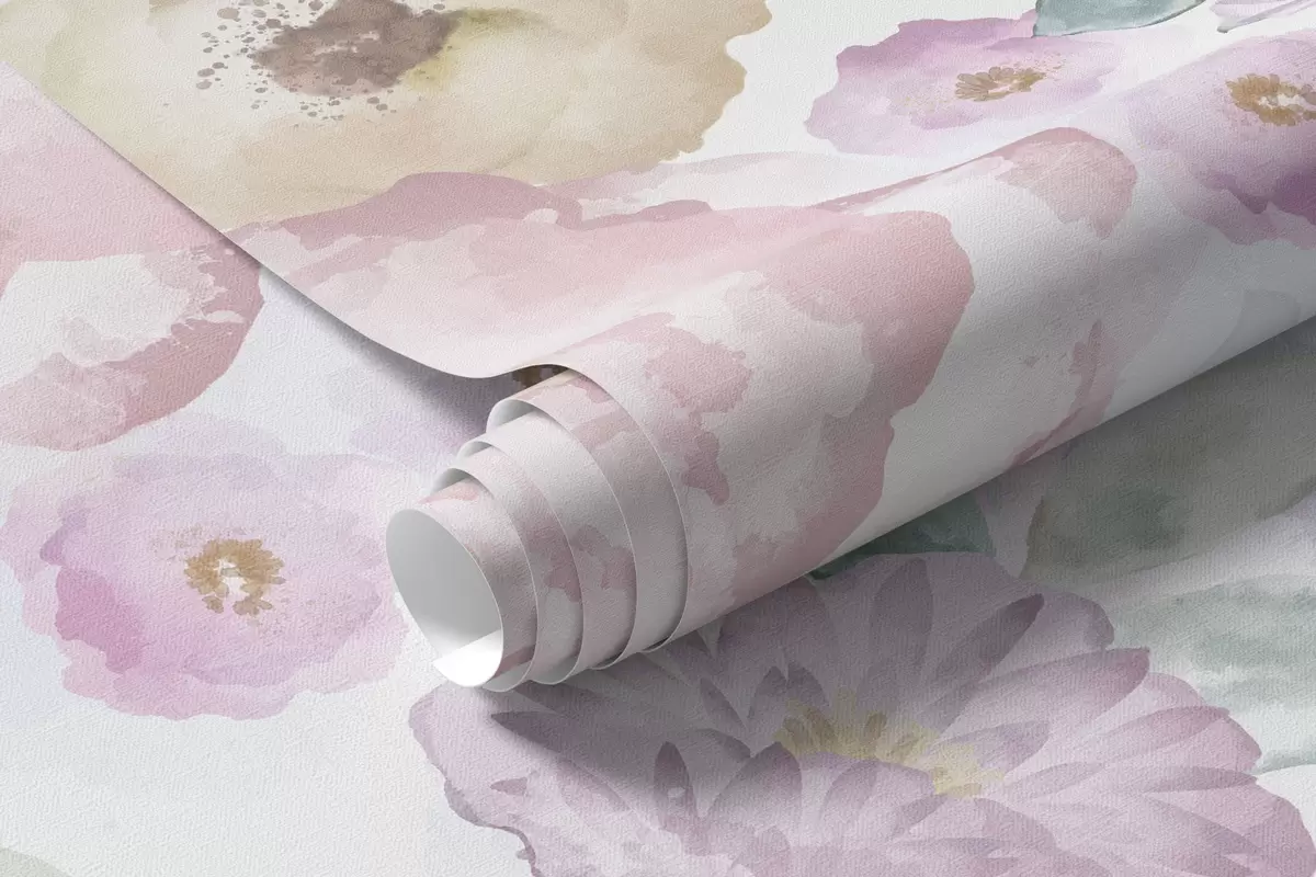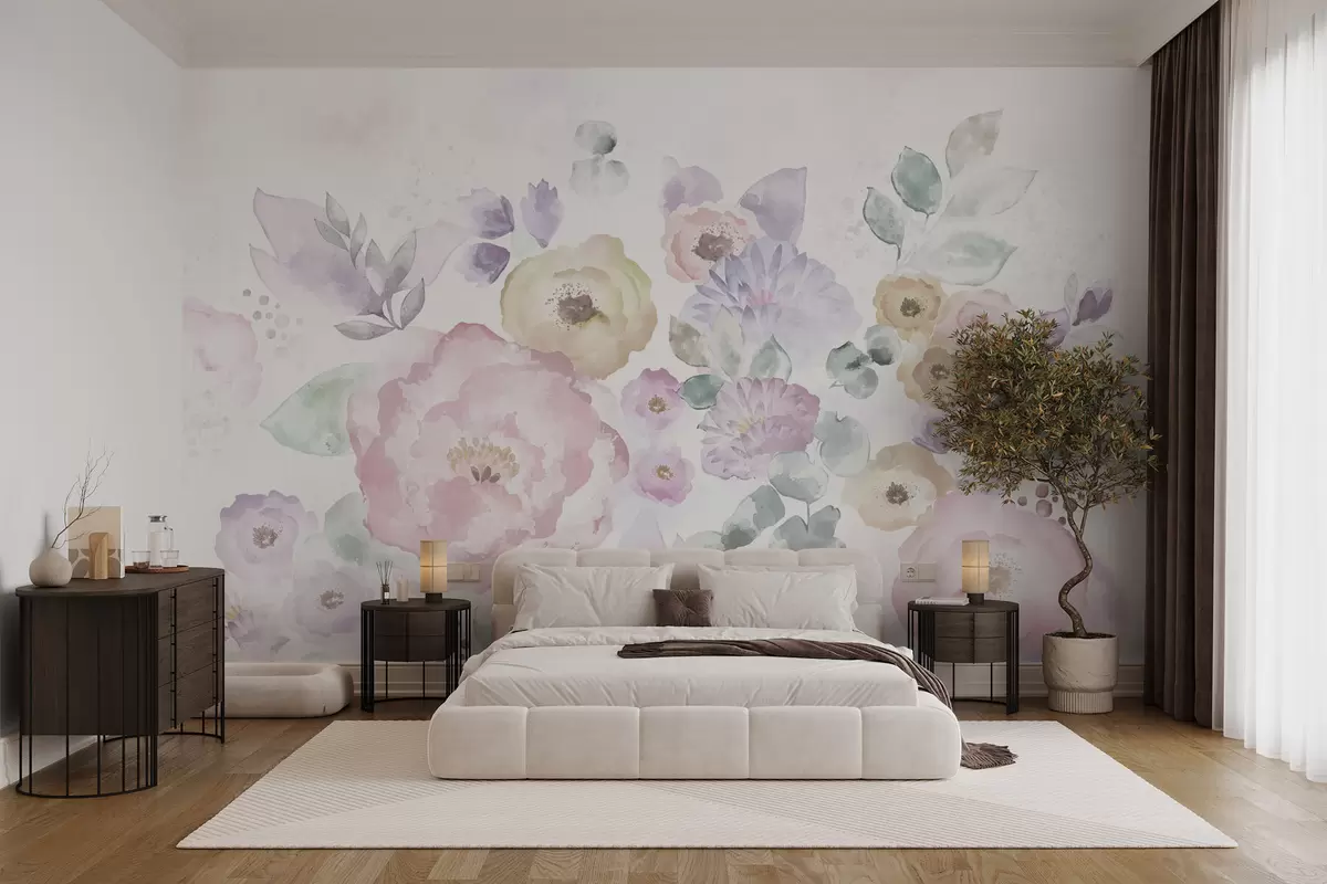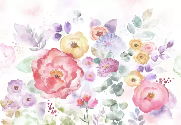 Papier peint Composition douce à l'aquarelle avec des fleurs et des feuilles N° w05093