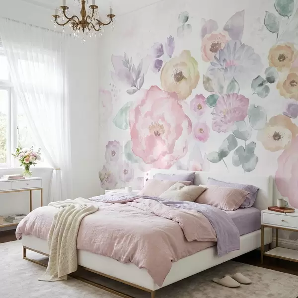 Papier peint Composition douce à l'aquarelle avec des fleurs et des feuilles N° w05093