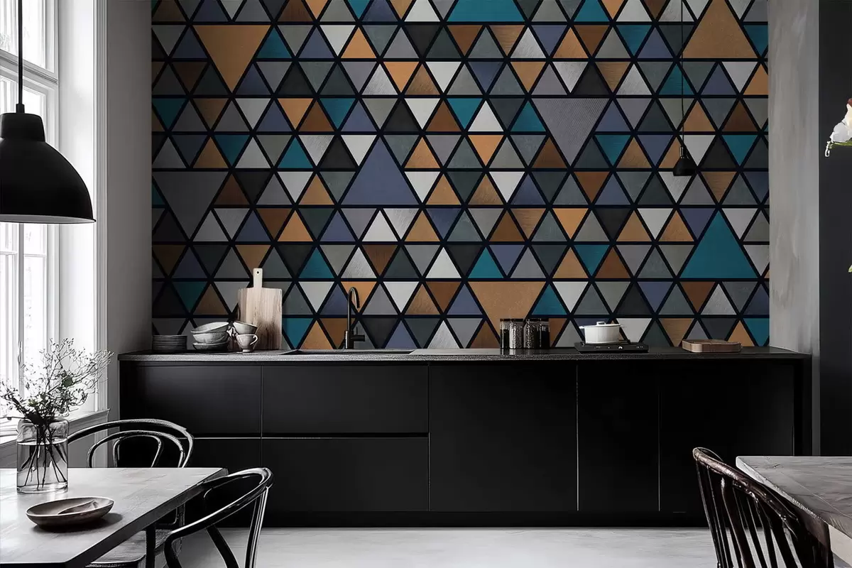 Papier peint Motif géométrique composé de triangles multicolores N° w05094