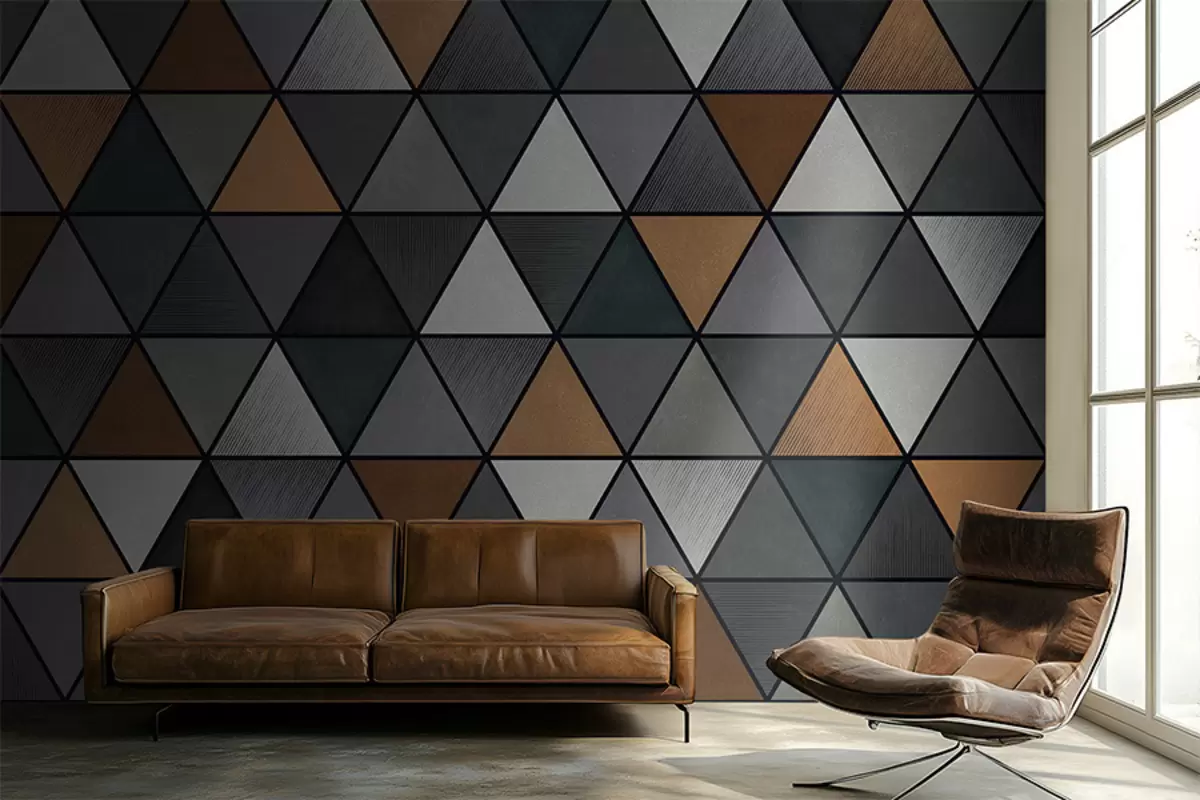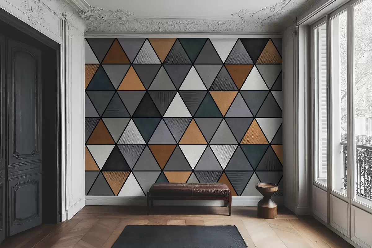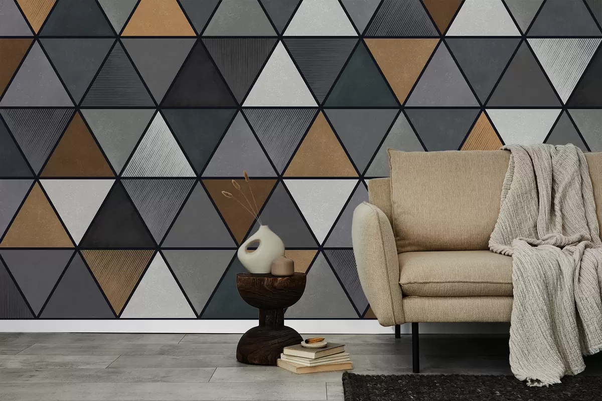 Papier peint Motif triangulaire avec des nuances grises et chaudes N° w05095v1
