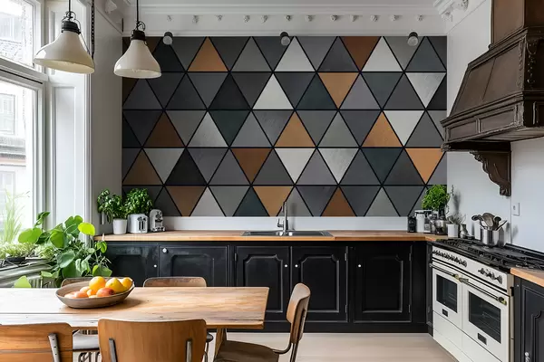 Papier peint Motif triangulaire avec des nuances grises et chaudes N° w05095v1