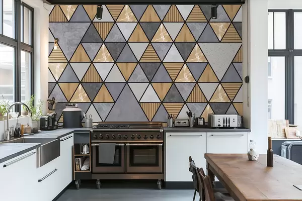 Papier peint Ornement triangulaire aux couleurs neutres et chaudes N° w05096v1