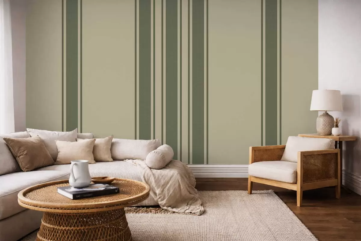 Papier peint Rayures verticales dans une palette de couleurs vert et beige discrets N° w05098