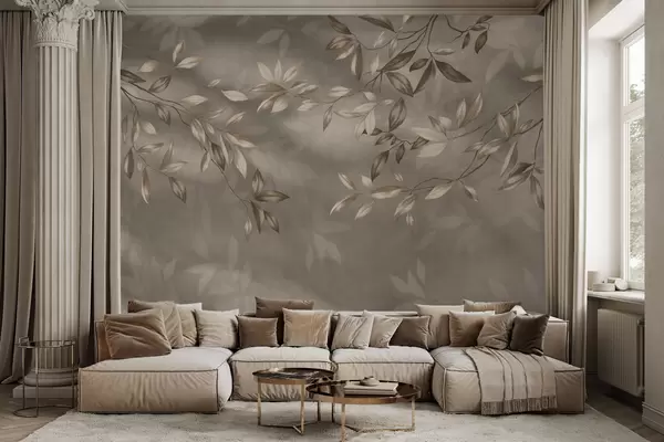 Papier peint Branches délicates et feuillues dans des tons beiges sur fond clair N° w05113v2