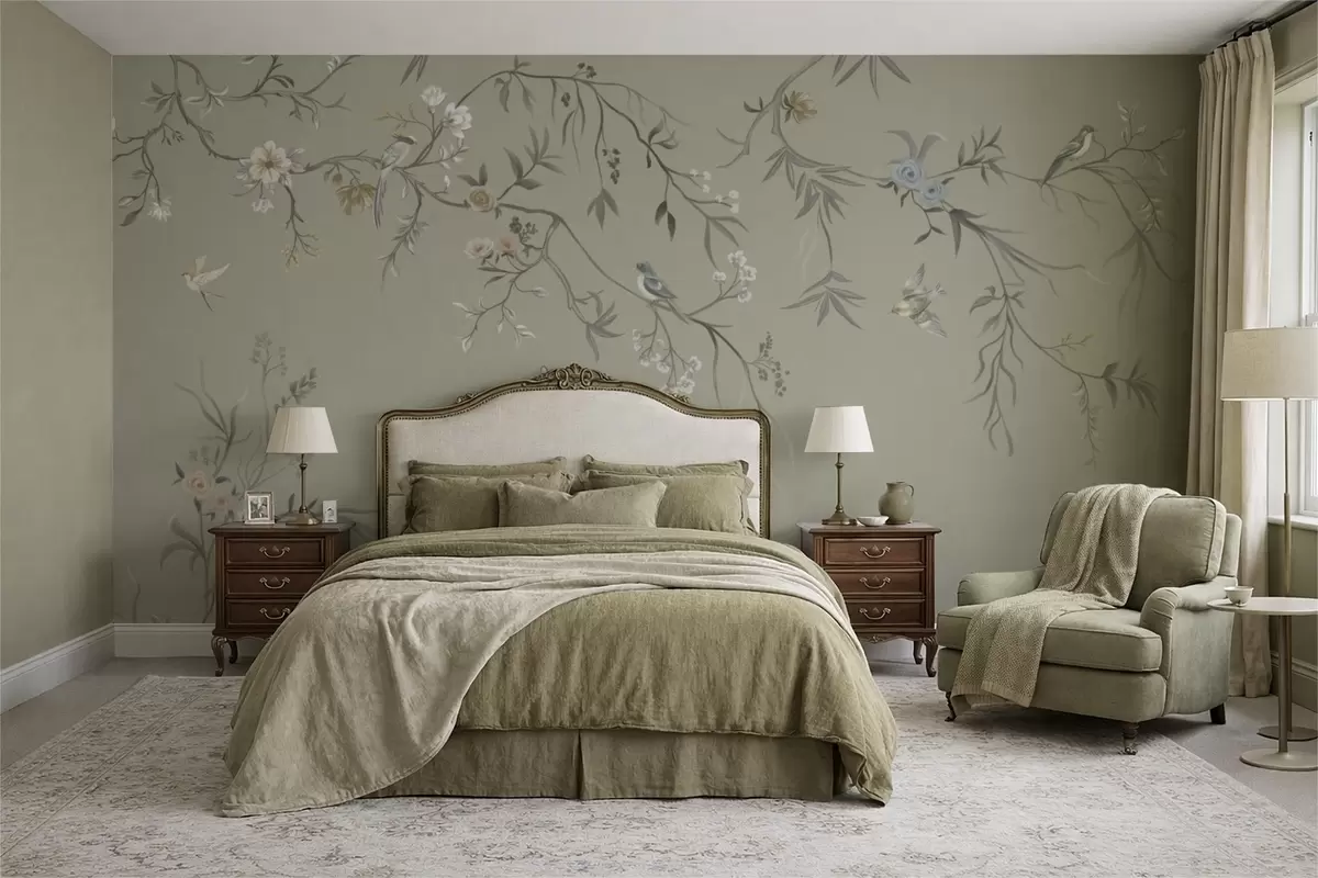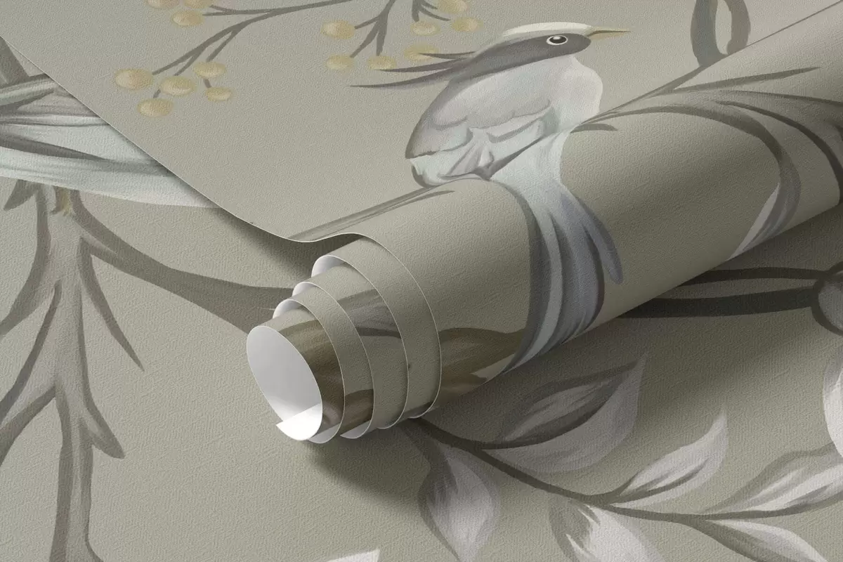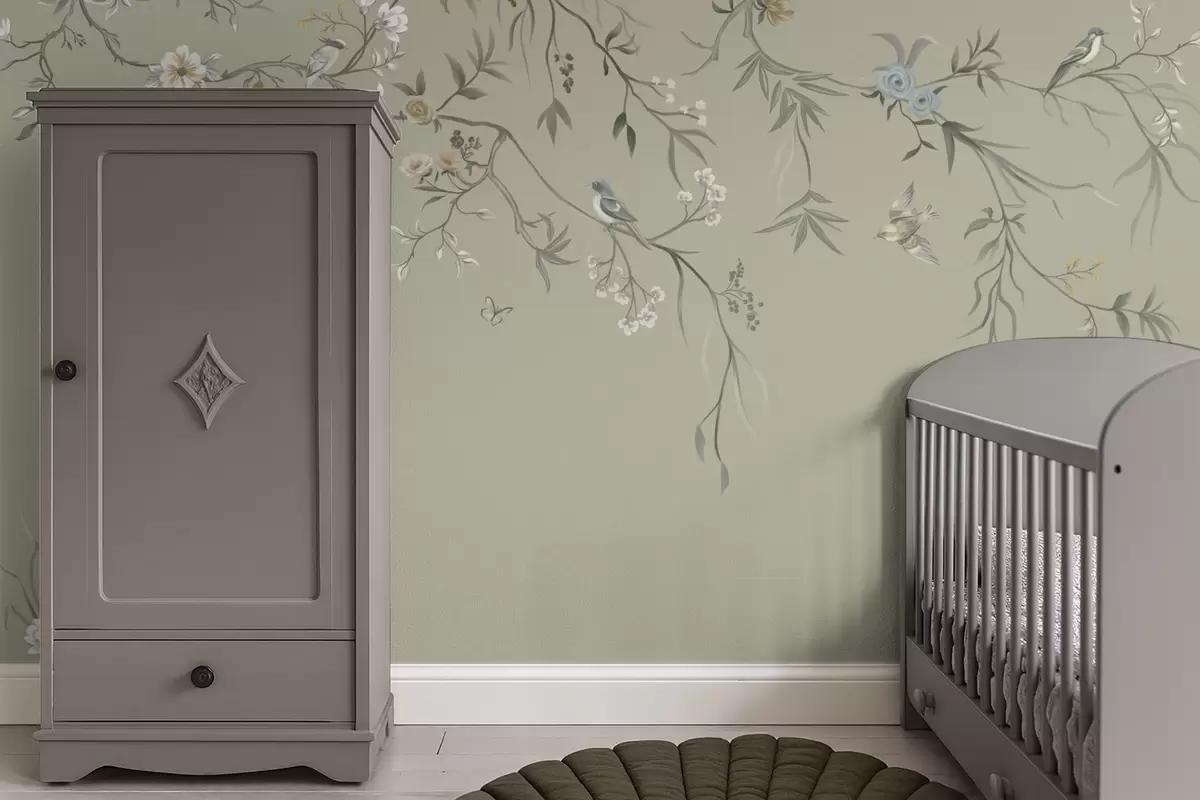 Papier peint Motif floral avec des oiseaux sur fond frais N° w05127v6