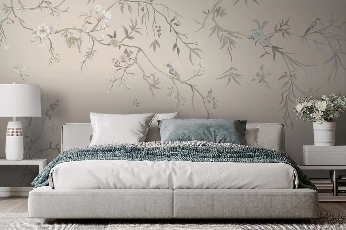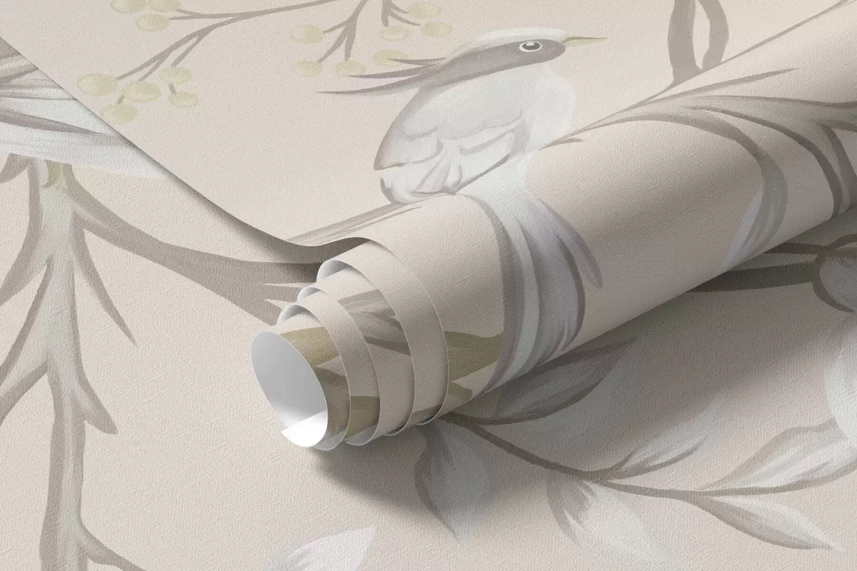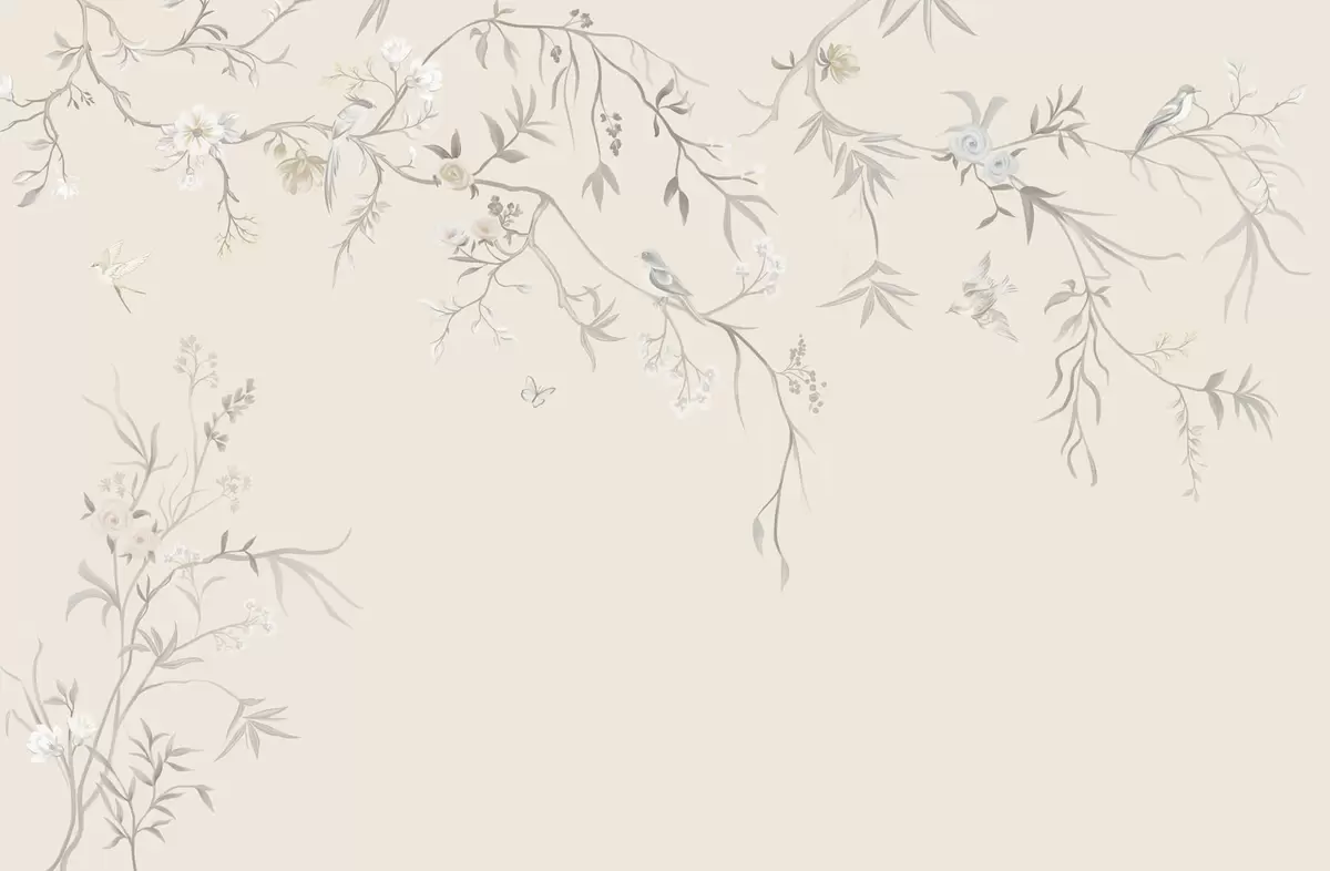 Papier peint Branches fleuries avec des oiseaux sur fond clair N° w05127v7