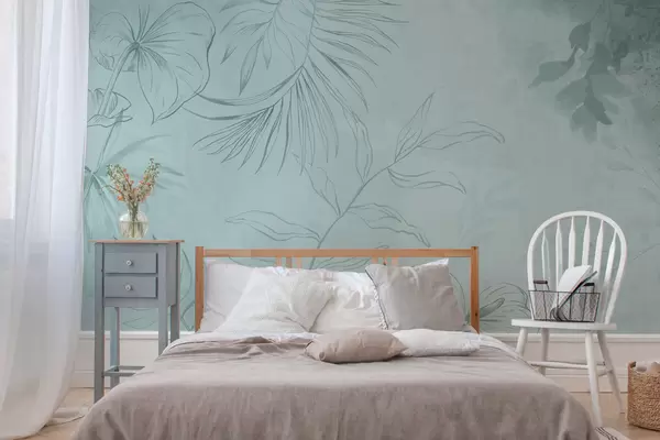 Papier peint Plantes linéaires sur fond vert tendre N° w05128v1
