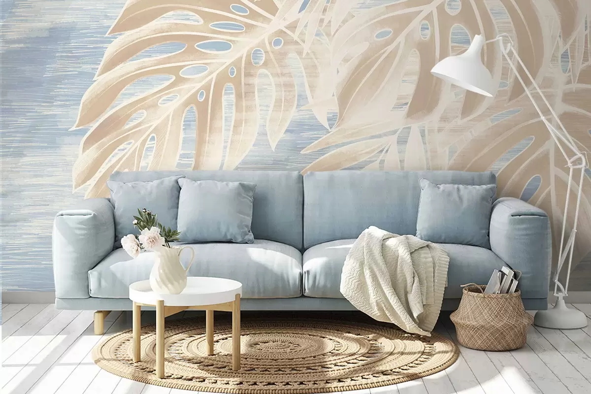 Papier peint Feuilles abstraites dans des tons beiges chauds sur fond clair N° w05130