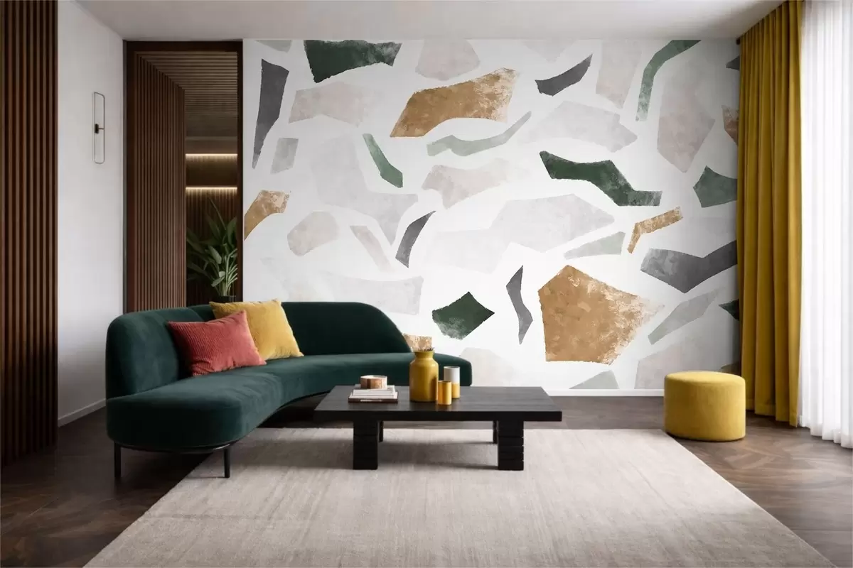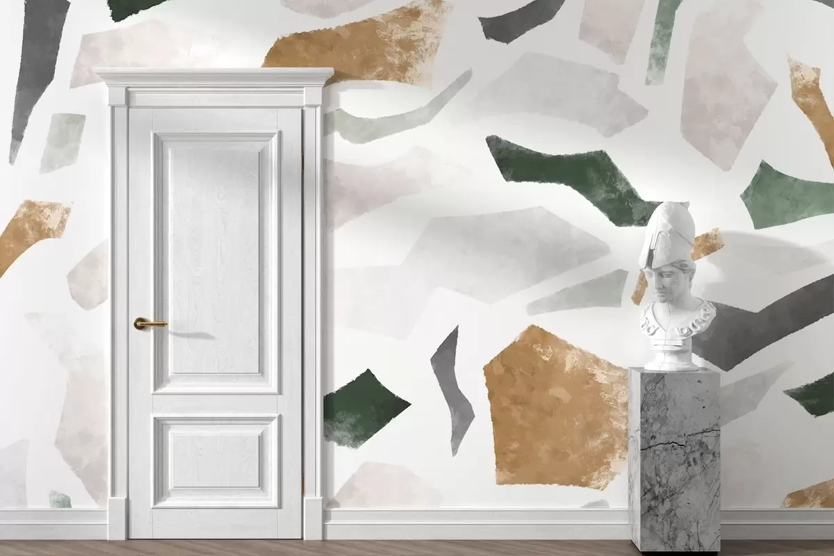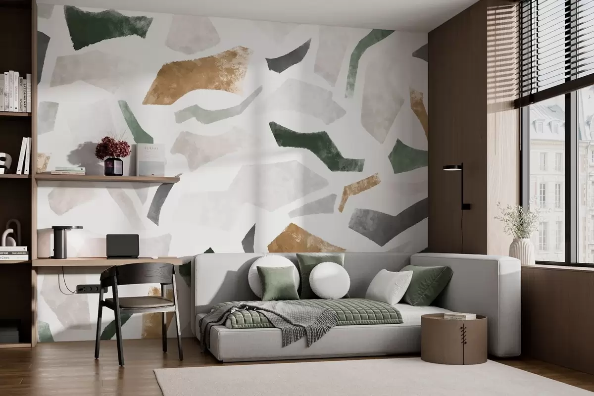 Papier peint Fragments texturés abstraits dans des tons verts et beiges N° w05146