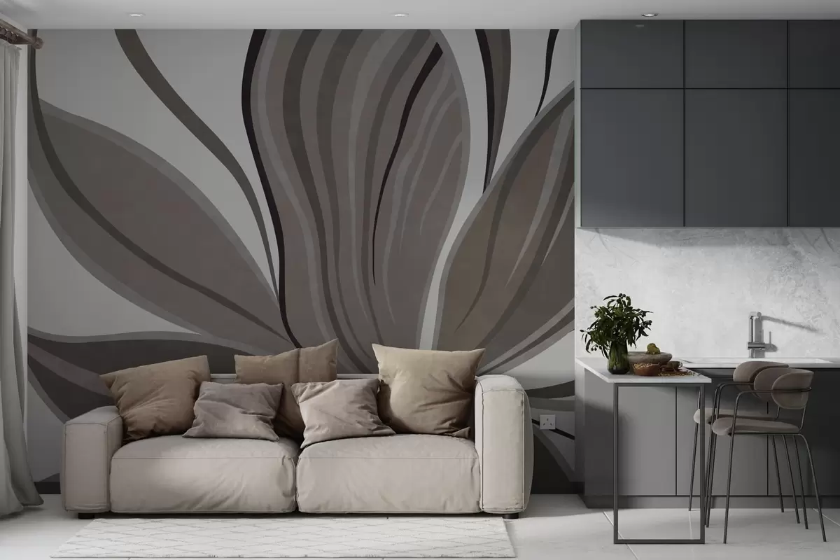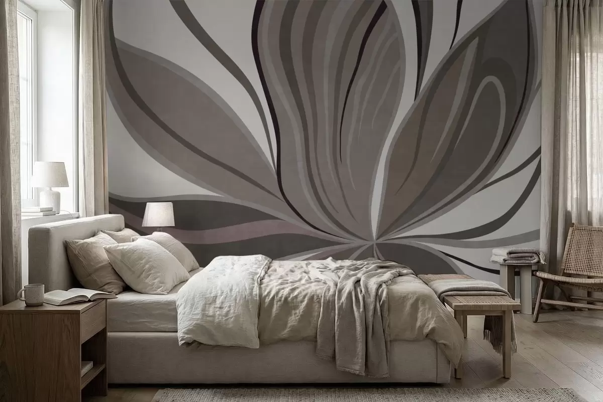 Papier peint Fleur abstraite aux lignes douces, dans des tons gris-beige N° w05147v1