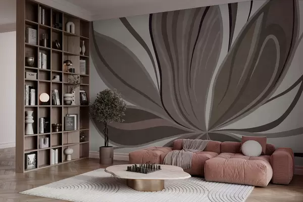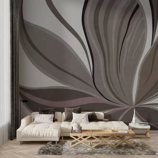 Papier peint Fleur abstraite aux lignes douces, dans des tons gris-beige N° w05147v1