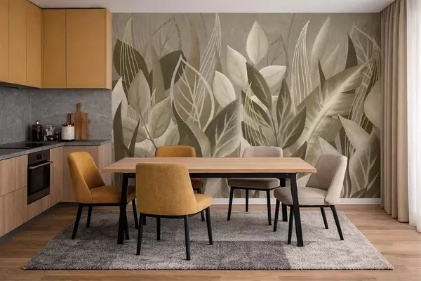 Papier peint Feuilles abstraites dans des tons beiges et verts N° w05148