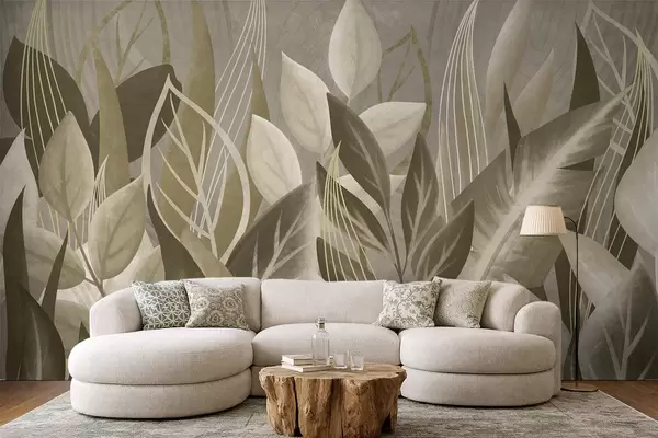 Papier peint Feuilles abstraites dans des tons beiges et verts N° w05148