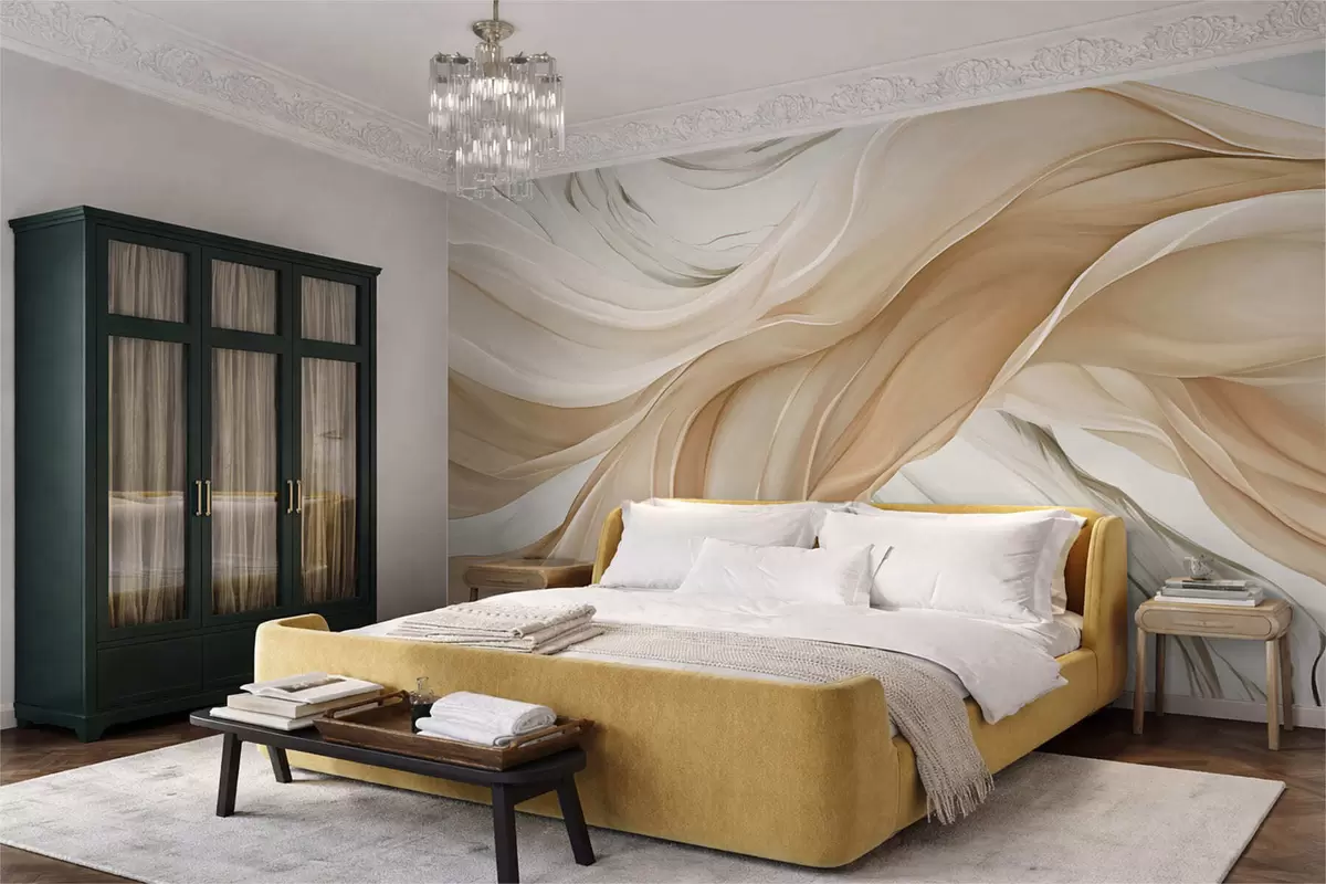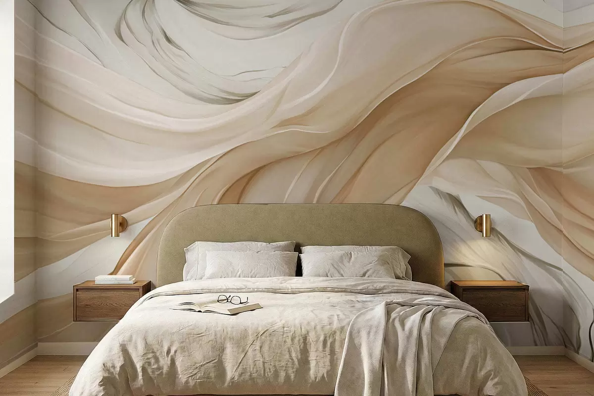 Papier peint Vagues fluides de tissu beige N° w05152