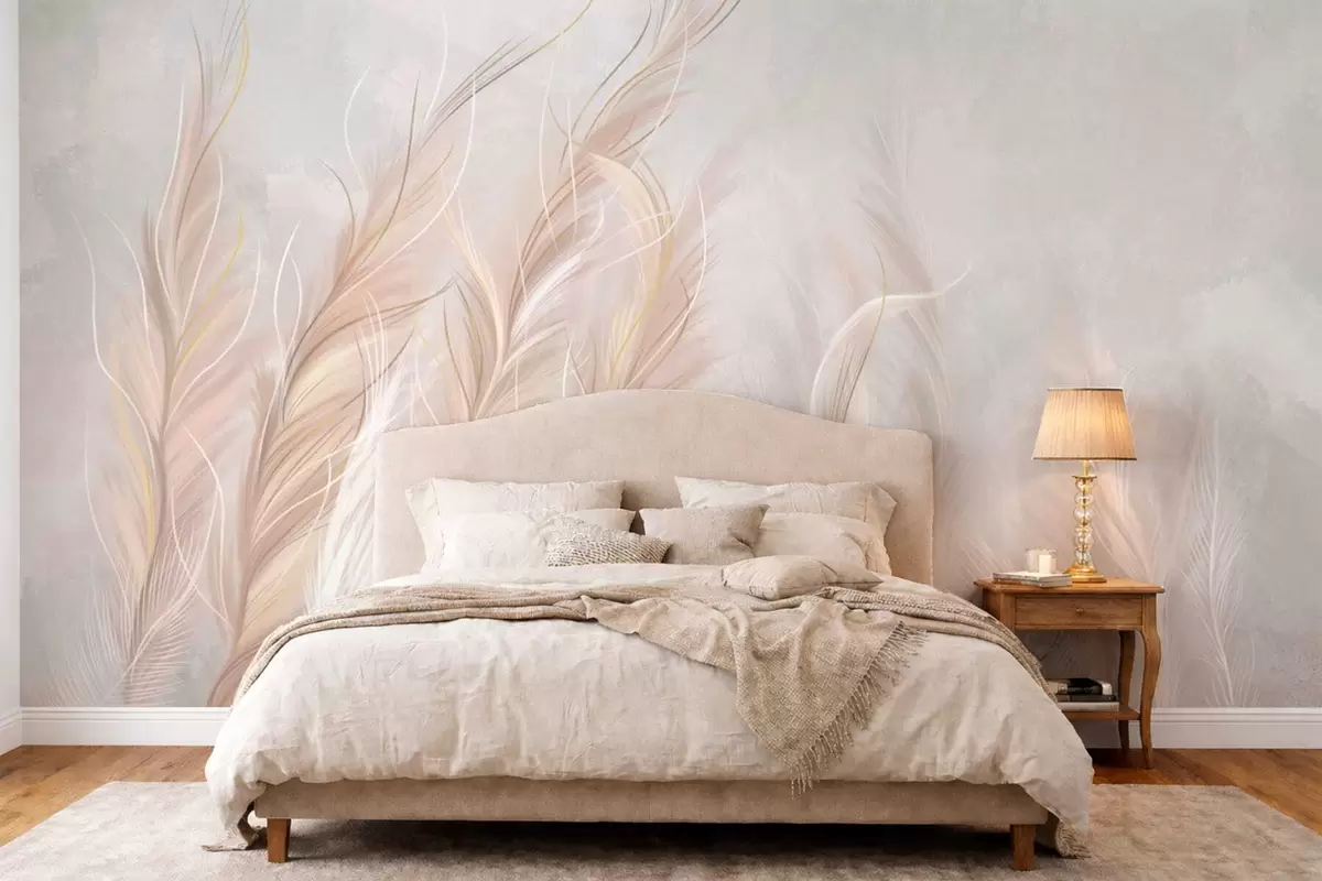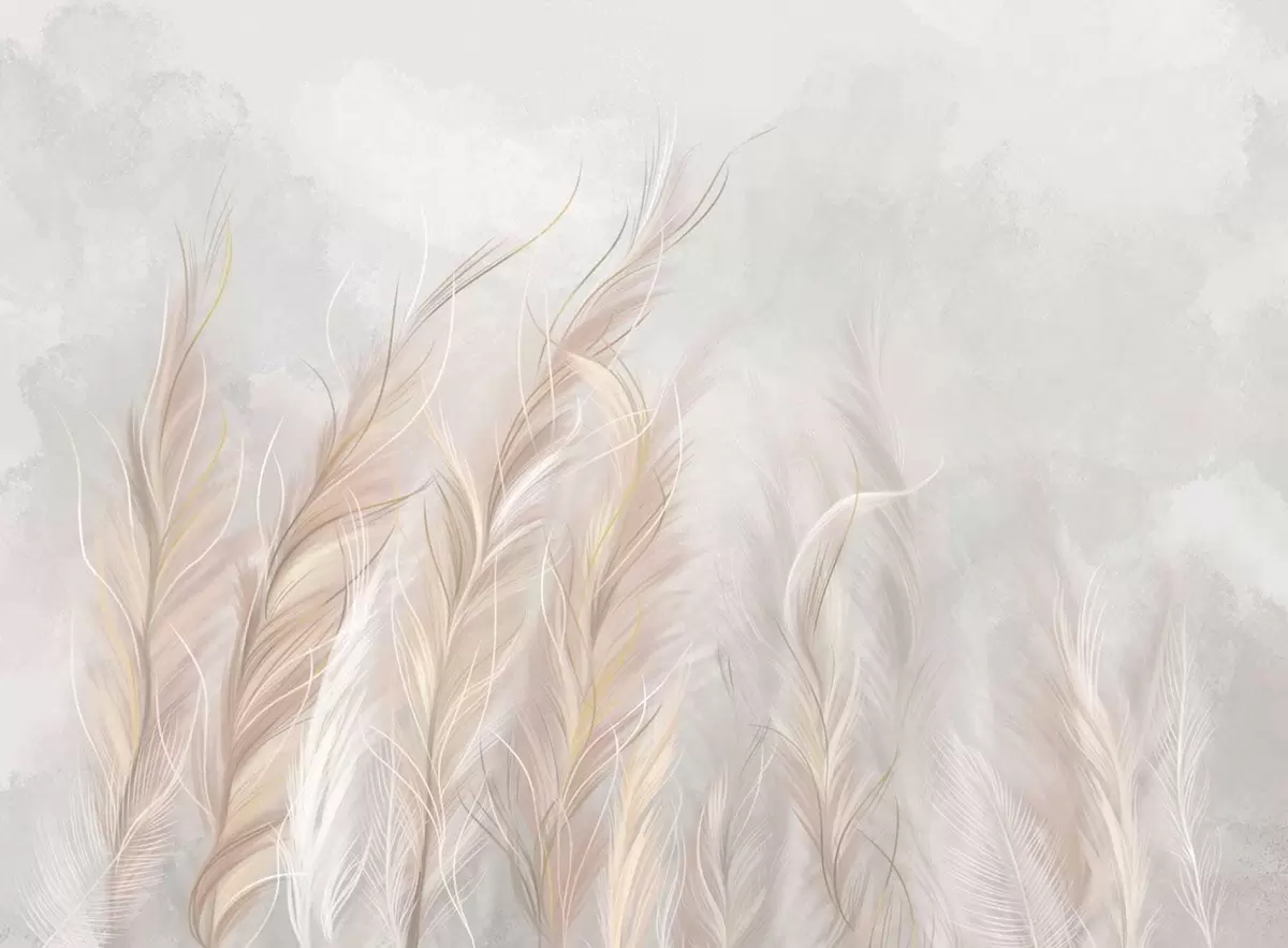 Papier peint Plumes douces et abstraites dans des tons neutres clairs N° w05153