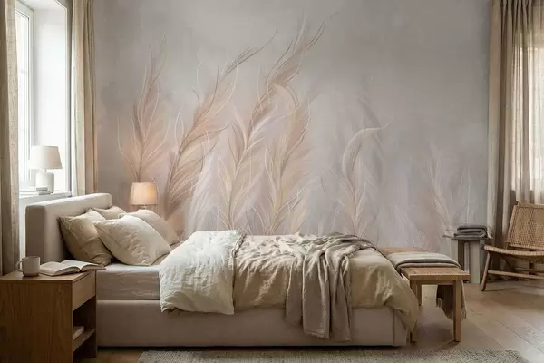 Papier peint Plumes douces et abstraites dans des tons neutres clairs N° w05153