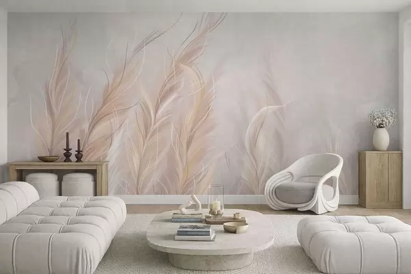 Papier peint Plumes douces et abstraites dans des tons neutres clairs N° w05153