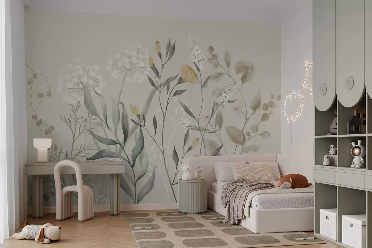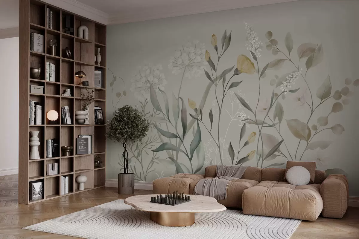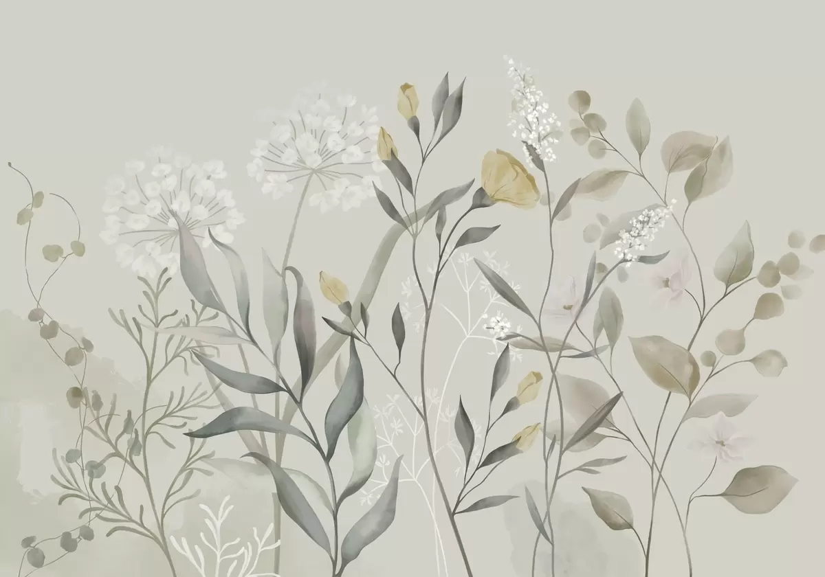 Papier peint Plantes aux accents jaunes sur fond clair N° w05154v1