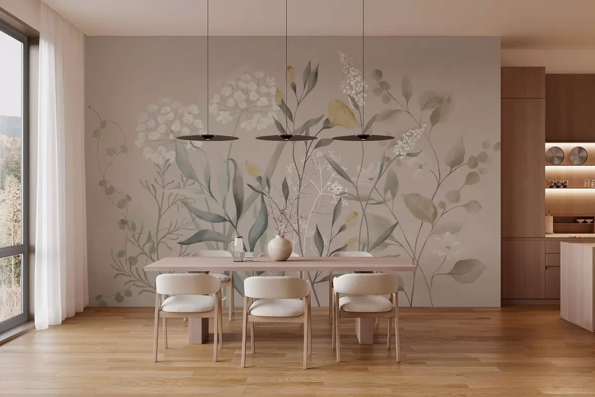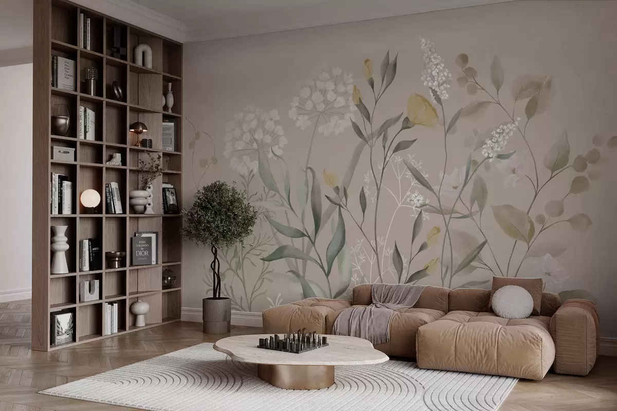 Papier peint Composition botanique dans des tons beiges chauds N° w05154v2