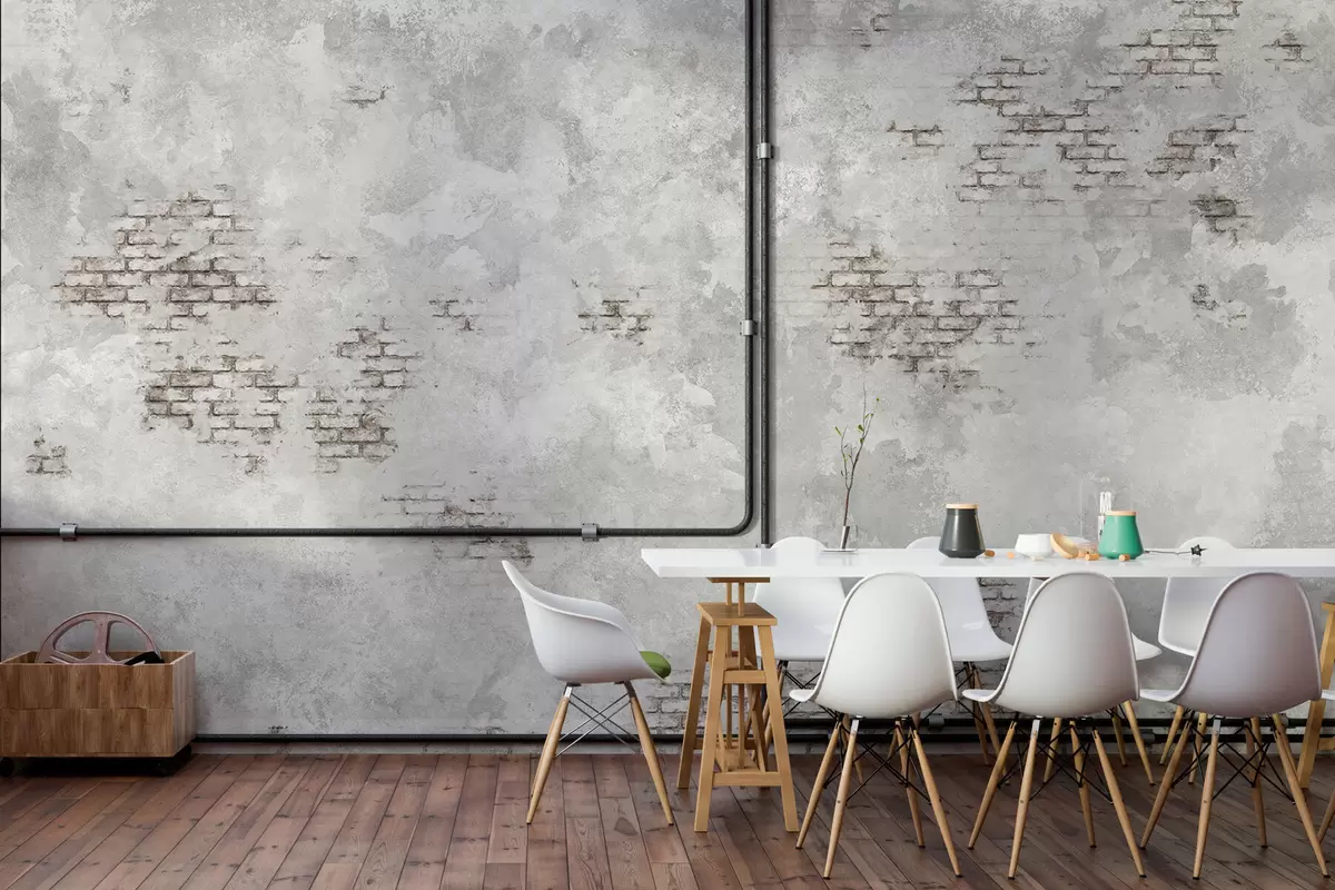 Papier peint Texture de plâtre grunge avec des fragments de briques apparentes N° w05161