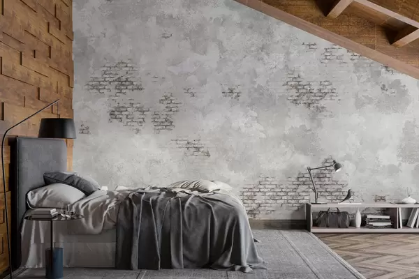 Papier peint Enduit gris grunge avec des parties en briques apparentes N° w05161v2