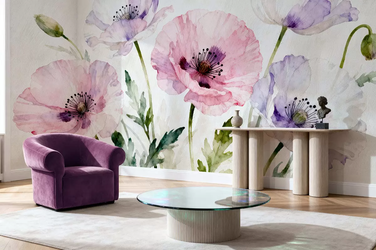 Papier peint Coquelicots en aquarelle N° w05174