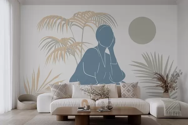Papier peint Silhouette d'une femme et feuilles de palmier N° w05190v1