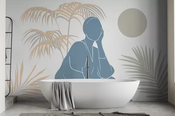 Papier peint Silhouette d'une femme et feuilles de palmier N° w05190v1