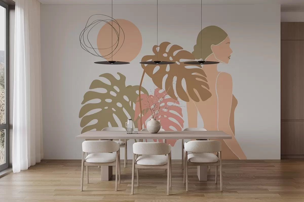 Papier peint Silhouette d'une femme près de feuilles tropicales N° w05192v1