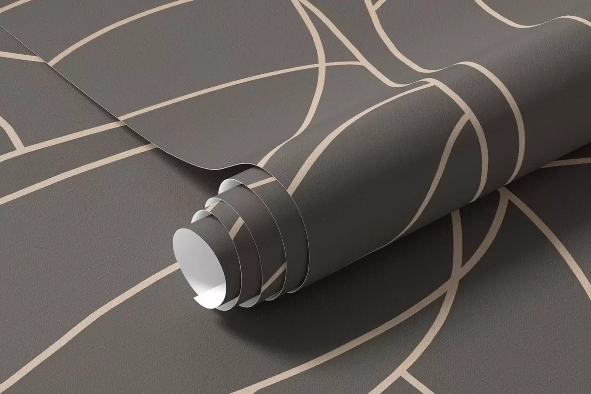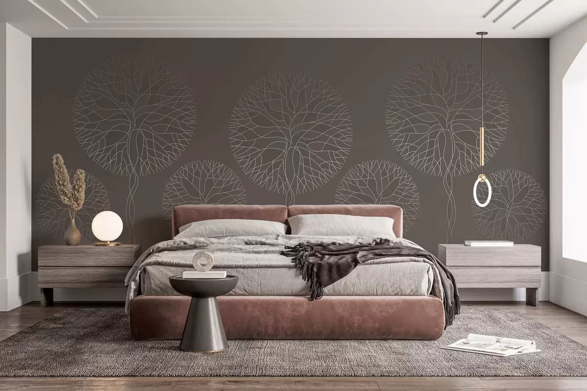 Papier peint Arbres fantastiques linéaires aux couronnes luxuriantes dans d'élégants tons moka N° w05213v1