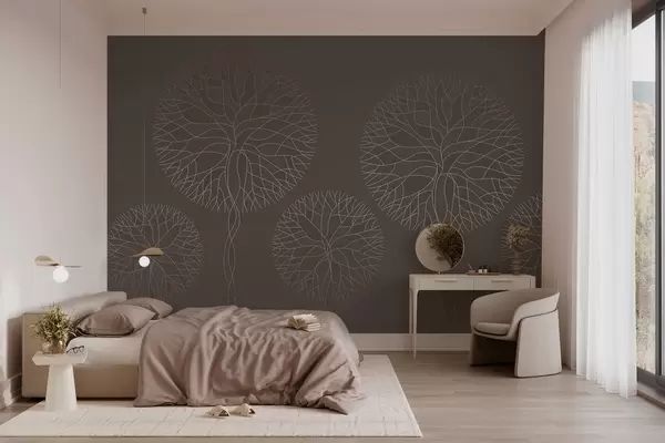 Papier peint Arbres fantastiques linéaires aux couronnes luxuriantes dans d'élégants tons moka N° w05213v1