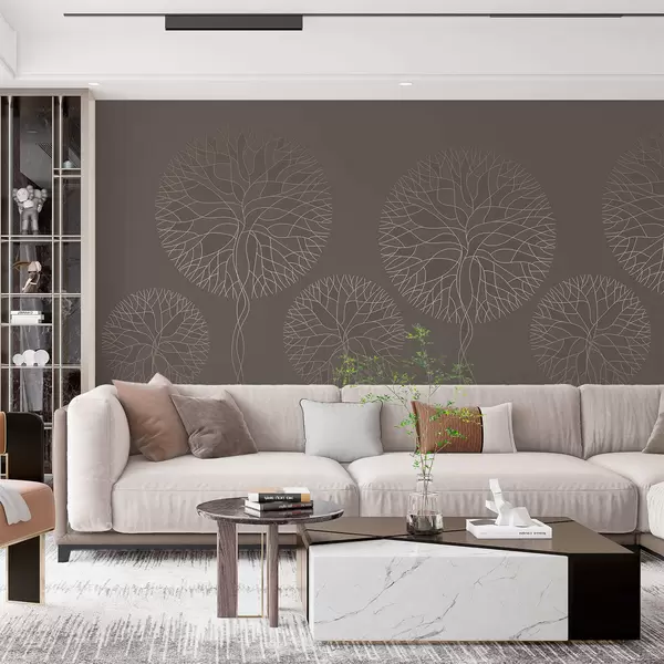 Papier peint Arbres fantastiques linéaires aux couronnes luxuriantes dans d'élégants tons moka N° w05213v1